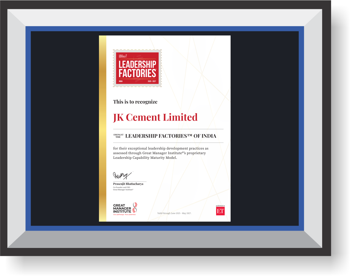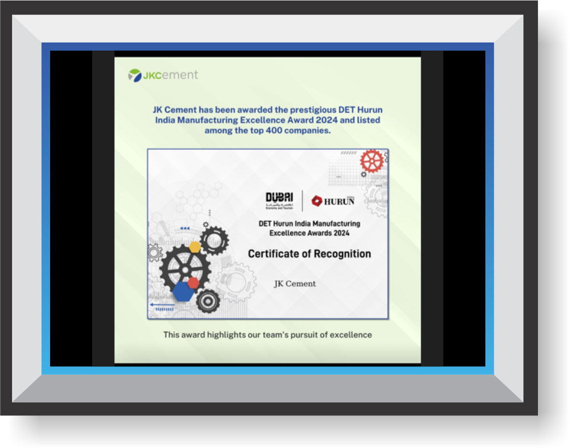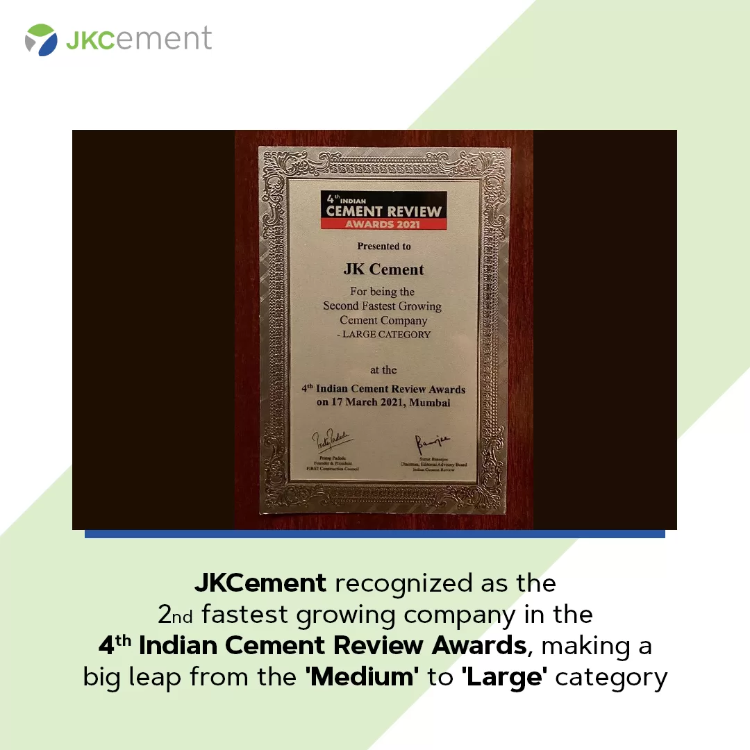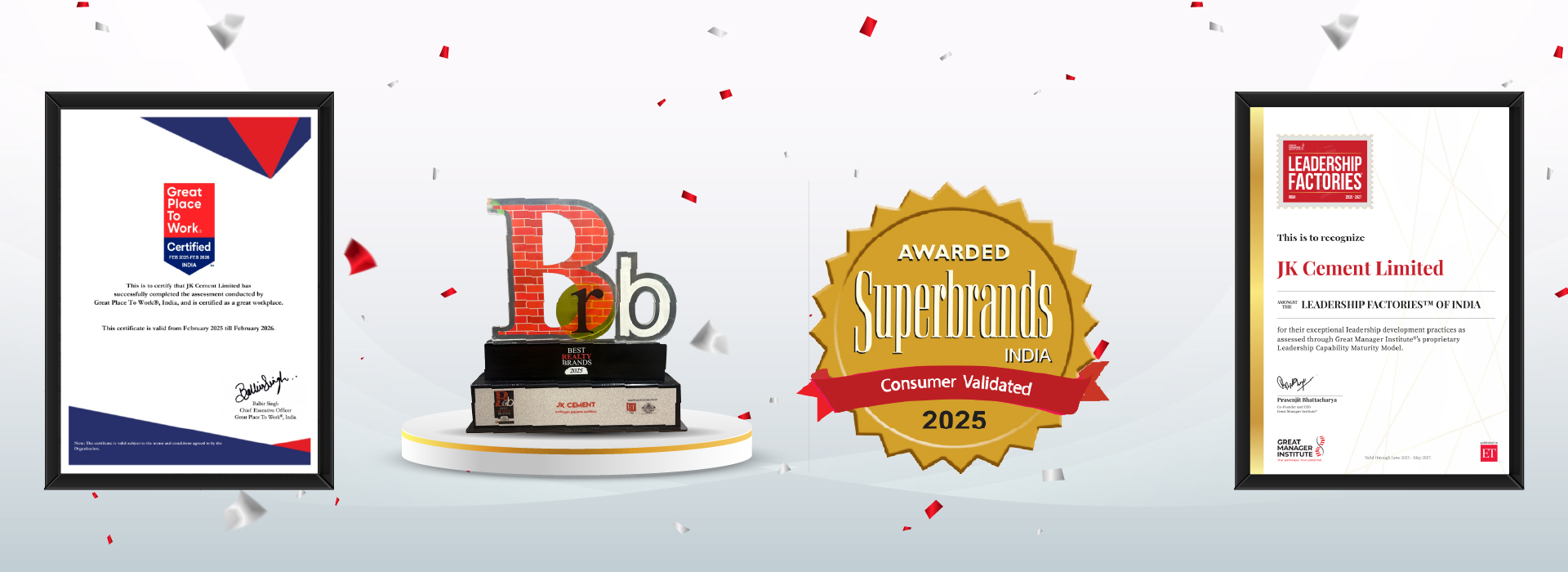 JKCement is firmly committed to achieving excellence. Our unstinting commitment towards highest standards of quality has earned us various accolades through the years. Our plants have been bestowed with many prestigious awards related to productivity, environment management, and logistics besides our brands and campaigns winning many laurels.