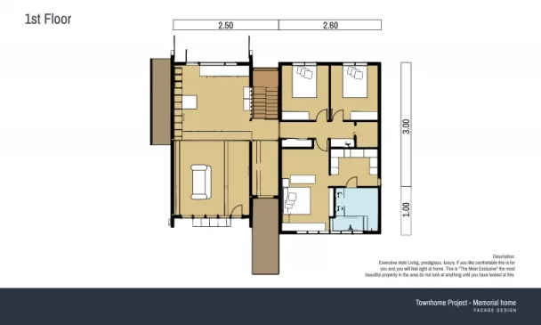 A 3-bedroom house design with a staircase provides a well-structured layout. It typically includes three spacious bedrooms, a living room, kitchen, and bathrooms. The staircase enhances the design, linking floors seamlessly. With smart space allocation, this layout ensures comfort and functionality.