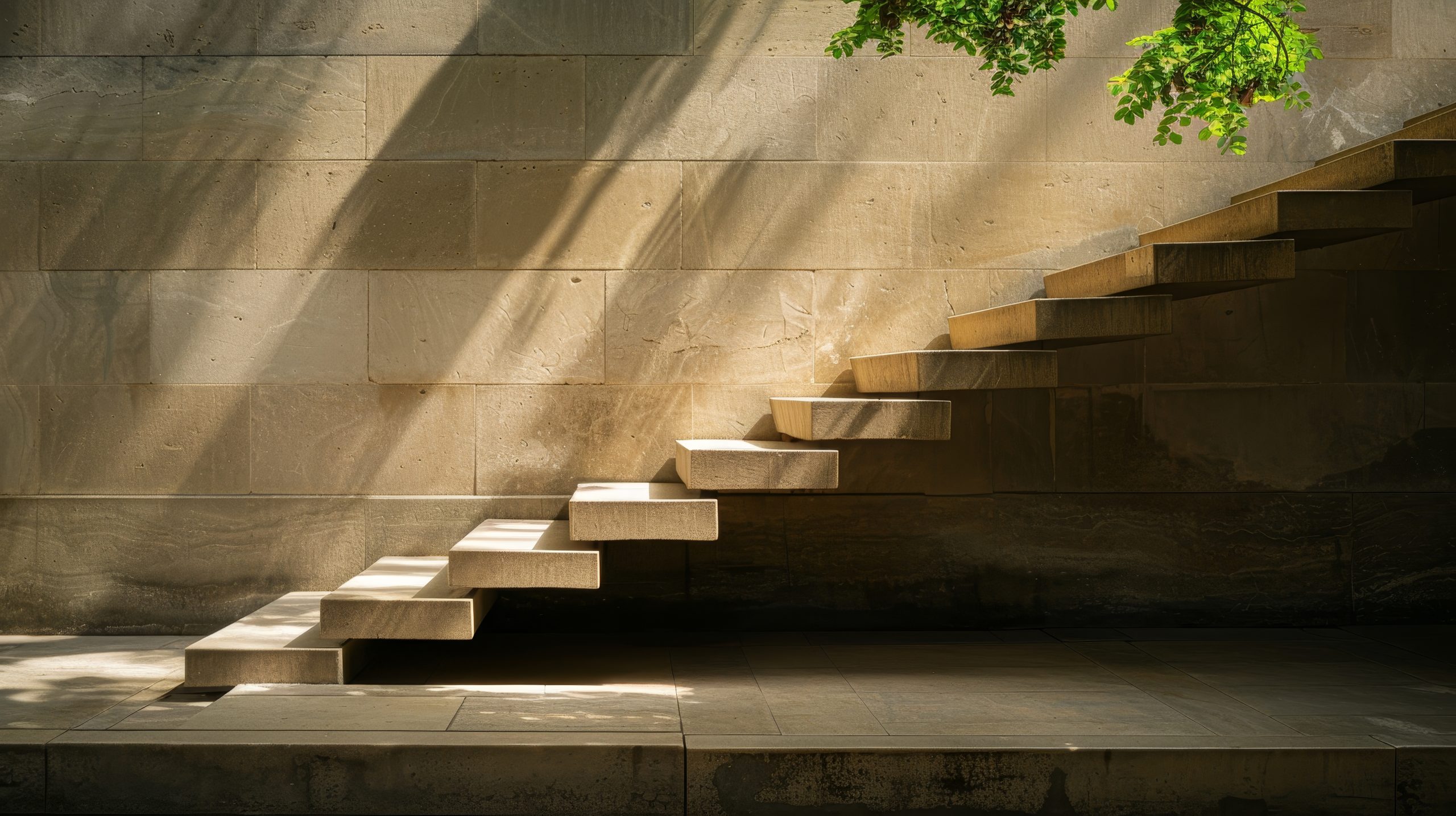 इस प्रकार की सीढ़ियां एक तरफ में anchor होती हैं, जिससे ऐसा लगता है कि सीढ़ी के trades बिना किसी सहायता के हवा में तैर रहे हैं।