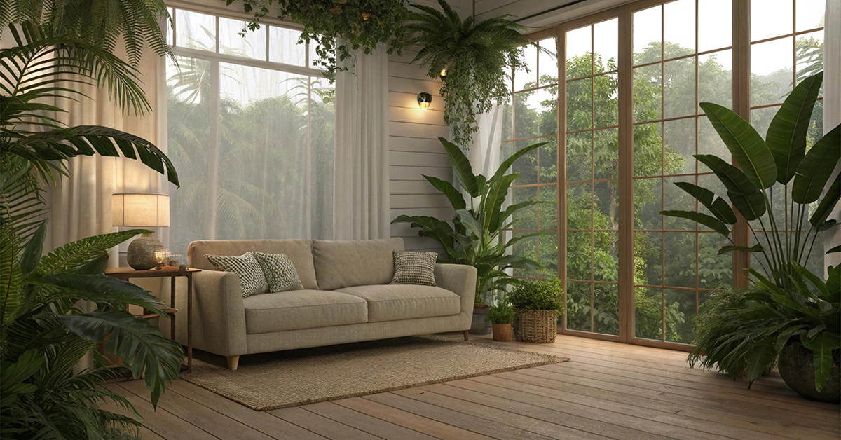 In our climate, plants do more than decorate. They can shield a west-facing room from harsh summer sun, bring back a little moisture during dry months, and quietly filter out invisible pollutants. It’s comfort, wellness, and design working together.