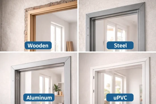 The most common types of door frames include wooden door frames, steel door frames, aluminium door frames, uPVC door frames, and concrete door frames.