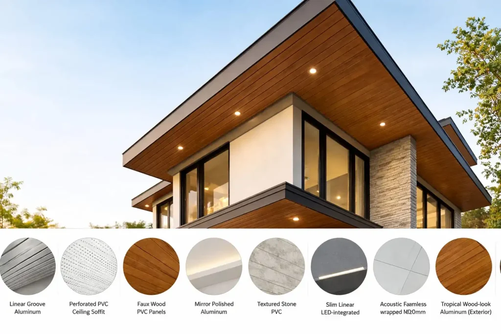 From minimalist linear panels to textured wood-look finishes, soffit panels serve roof soffits (under-eaves) and ceiling soffits (dropped beams/TV units). This guide showcases 10 proven designs with material specs, installation tips, and cost breakdowns for Indian climates.