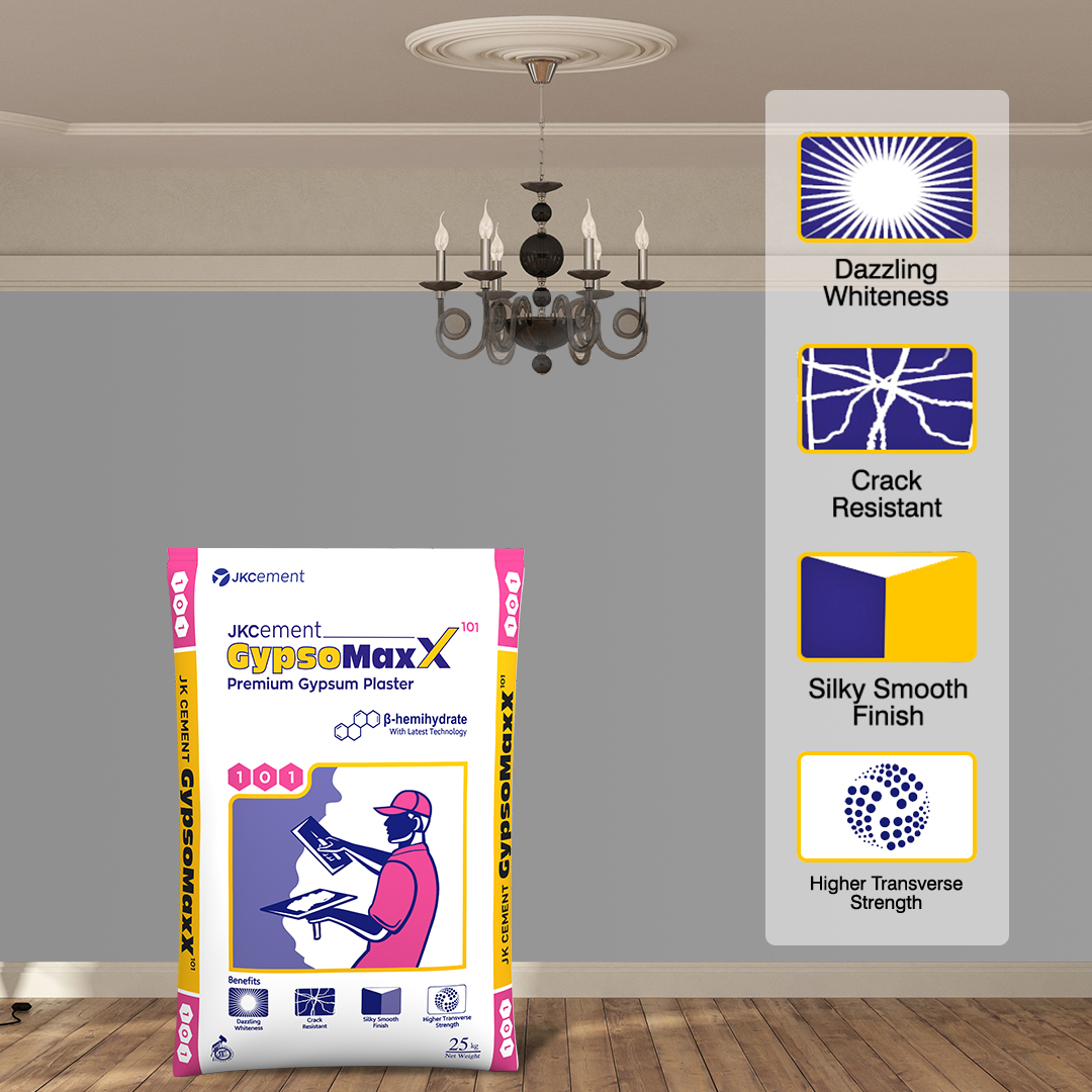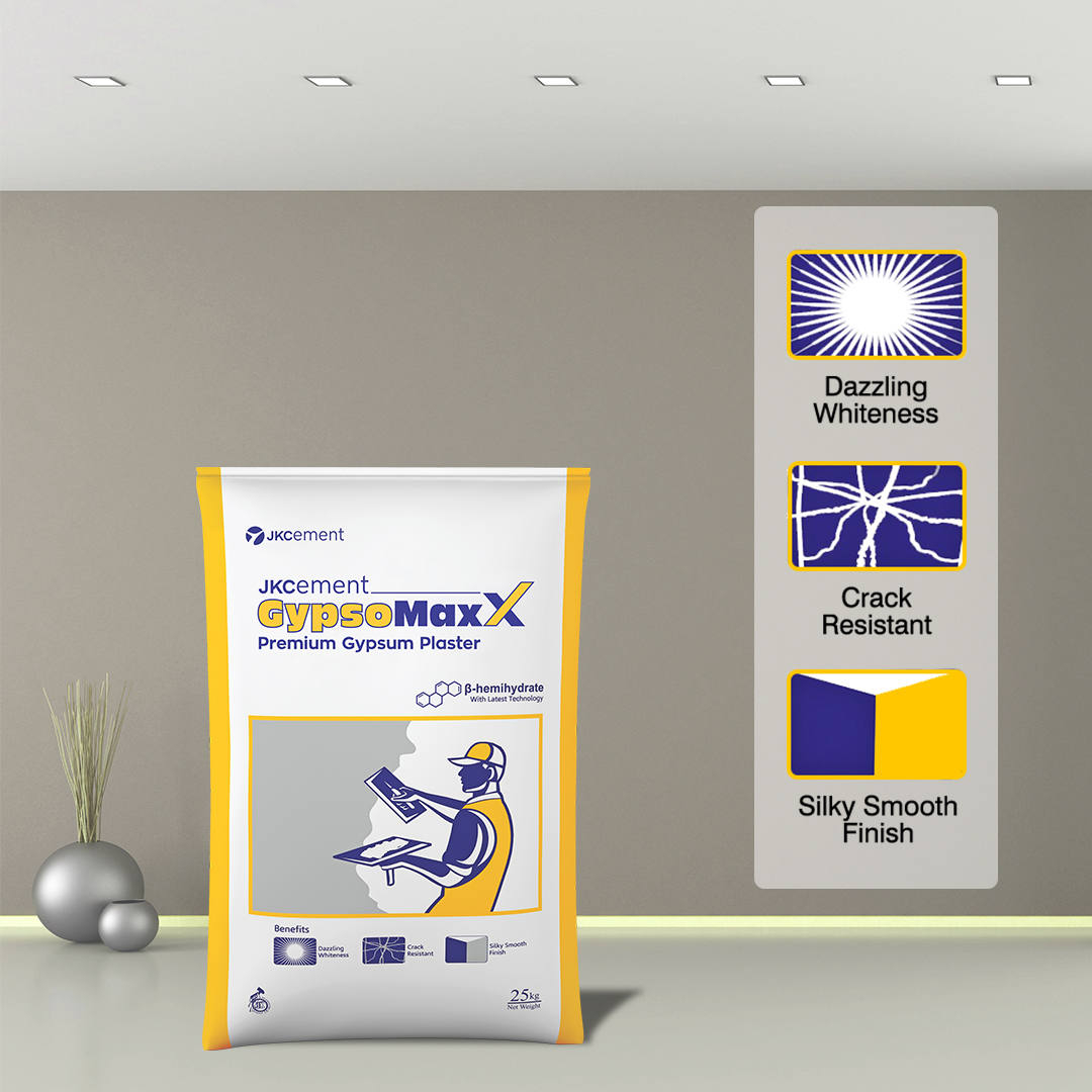 The latest product in the JKC Ltd. bouquet- JKC GypsoMaxX 101, is a premium gypsum plaster made from the purest form of natural gypsum. It is a premium base coat produced as a result of calcination of the raw gypsum under a controlled production process in specialized manufacturing units. JKC GypsoMaxX 101 is suitable for application on internal surfaces including walls and ceilings.