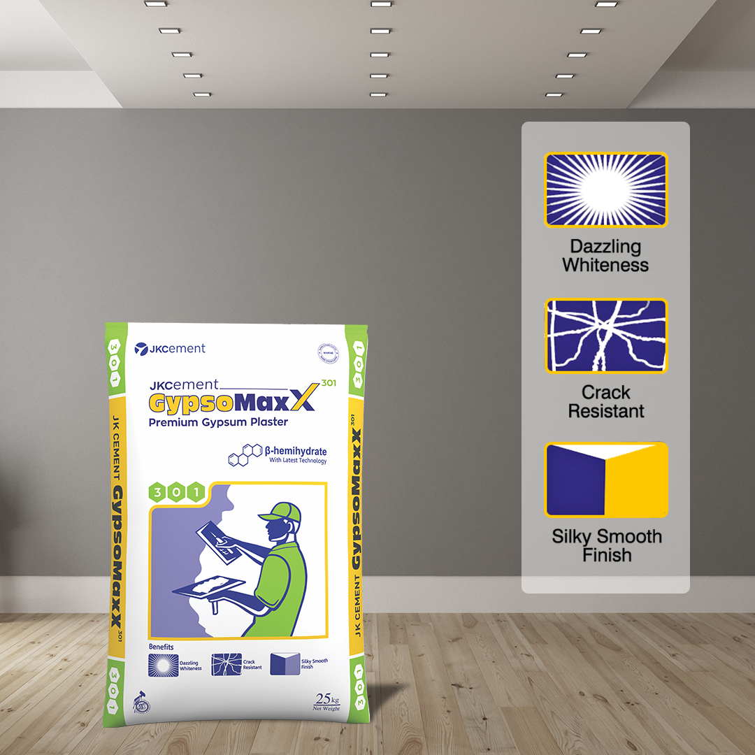 JKC Ltd.’s latest offering - JKC GypsoMaxX 301, is a premium base coat gypsum plaster made from the purest form of marine gypsum. Produced as a result of calcination of the raw gypsum under a controlled production process in specialized manufacturing units, JKC GypsoMaxX 301 is suitable for application on internal surfaces including walls and ceilings.