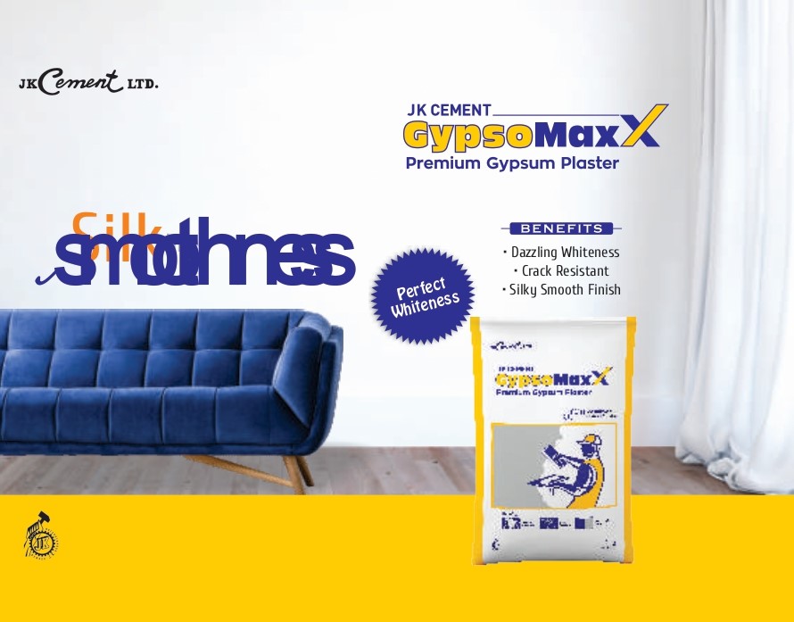The latest product in the JKC Ltd. bouquet- JKC GypsoMaxX, is a premium gypsum plaster made from the purest form of natural gypsum. It is a premium base coat produced as a result of calcination of the raw gypsum under a controlled production process in specialised manufacturing units. JKC GypsoMaxX is suitable for application on internal surfaces including walls and ceilings.
