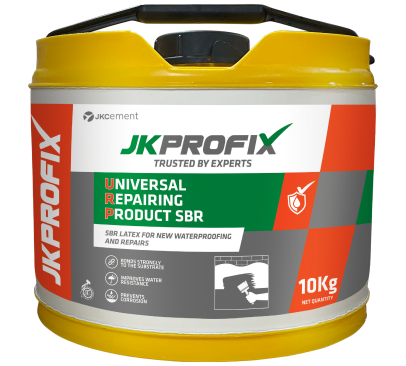JKPROFIX URP is a modified styrene butadiene latex emulsion, ready-to-use for concrete repair and waterproofing. Ideal for spalled concrete and waterproofing toilets, bathrooms, and small terraces. It reduces shrinkage, prevents cracking, dust pickup, and improves abrasion resistance.