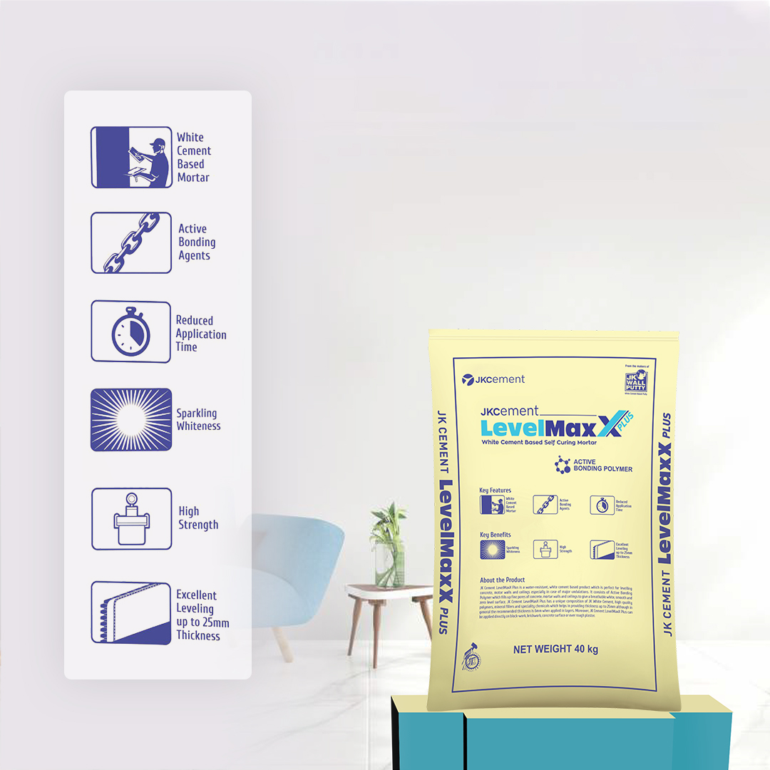 JKC Cement LevelMaxX Plus is a water-resistant ready-mix plaster that fills up fine pores to give a white, smooth finish to your walls and a zero level surfaces to paint on.
